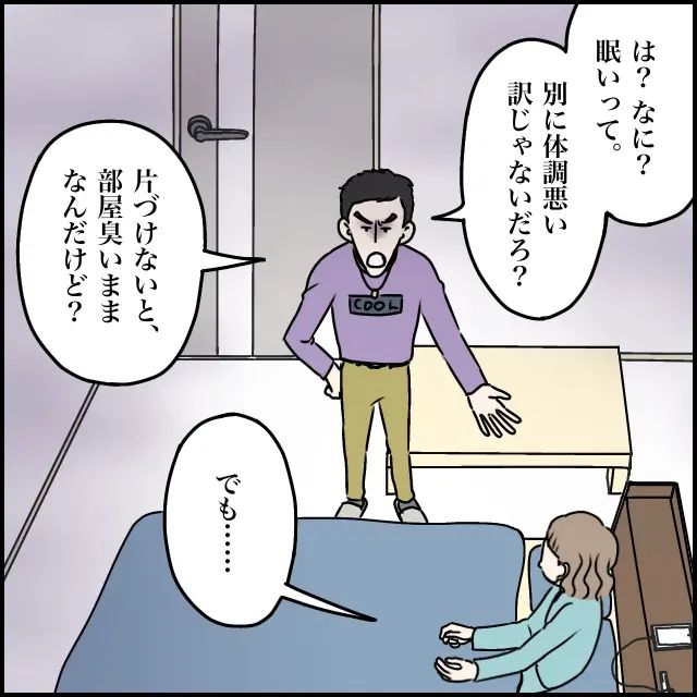 「は?なに?眠いって、別に体調悪いわけじゃないだろ?片付けないと部屋臭いままなんだけど?」散らかったままのバーベキューの道具を見て見ぬふりをした私が相当許せなかったのか、タカシは威圧的な態度で私を責め立てます。
