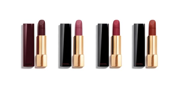 ルージュ ヌワールがついにリップに登場。アイコニックなカラーに染まった限定ケースにも注目したい。ルージュ アリュール ヴェルヴェット 左から 387¥7,040、357 367 377 各¥6,930(以上1/9限定発売) ©CHANEL