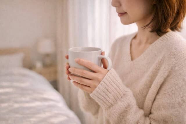 まずは、起きたらカーテンを開けて朝の光を浴びることから。光の刺激は脳に「朝になった」という合図を送り、メラトニン分泌のリズム調整が始まります。白湯を飲んで内側を温める、ゆっくり噛んで朝食をとるなど、過度じゃない刺激で交感神経が自然に立ち上がる環境を作りましょう。