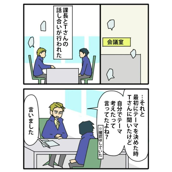 ところが、ほどなくしてTさんが作成した資料が盗作であることが発覚。課長は、Tさんと面談をします…。