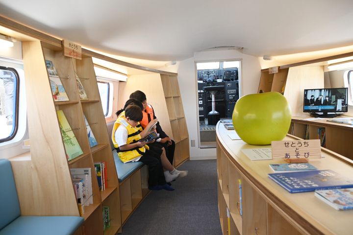 世界でも珍しい「海を走る図書館」。安藤が香川県に寄贈したこの船は、既存の旅客船を改修したもので、約2,000冊の本が子どもたちを出迎える。単に本を読むだけでなく、デッキに出て潮風を感じたり、操舵室を見学したりと、船という非日常の冒険と読書体験を味わえるのが特徴だ。