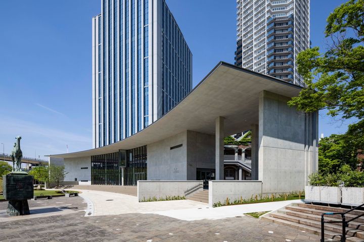 市内にある公園「東遊園地」内に建つ図書館。この公園内には1995年に起きた阪神淡路大震災の被害に遭った方々への慰霊と復興のモニュメントがある場所で神戸市民にとっても特別な場所だ。直線と曲線を組み合わせた伸びやかな建物は地上から2階まで続く大開口があり、館内に自然光を導く。