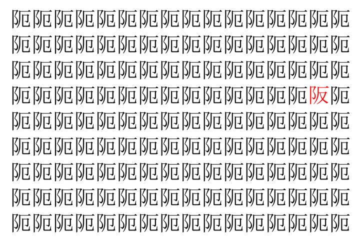 2. 【脳トレ】「阨」の中に紛れて1つ違う文字がある!?あなたは何秒で探し出せるかな??【違う文字を探せ!】