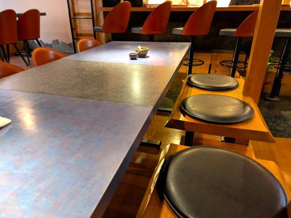 店内は、土壁と木の温もりのある和モダンな空間です。落ち着いた雰囲気の中、食事が楽しめるのがいいですね~。