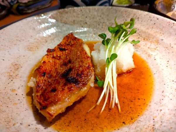 美しいですね。皮がパリッとしていて、白身が旨い!イシダイに似てさっぱりとした味わいです。おいしいです。