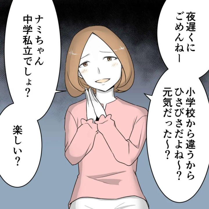 ハルちゃんママは「夜遅くにごめんねー」と言って、小学校から違うから久しぶりだけれど、ナミが通っている私立中学のことも知っていて、「楽しい?」と聞いてきました。