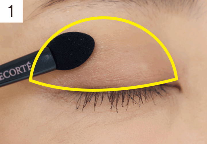 細いチップにAを取り、上まぶたのくぼみに細くのせる。