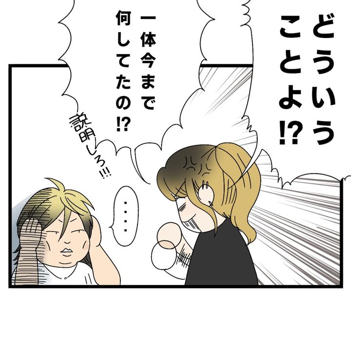 サチさんはカフェにいることも忘れて「どういうことよ!?一体今まで何してたの!?説明しろ!!」と信也さんに怒りをぶつけました。信也さんはいつものこと、と言わんばかりの悪びれない余裕の顔で耳をふさぎ、だんまりを決め込みました。