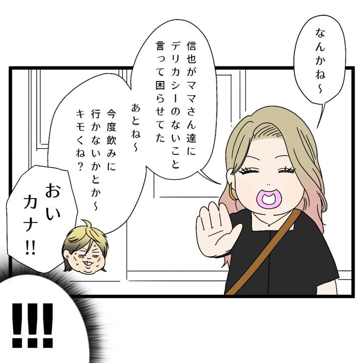 カナさんの発言は、信也さんにハッキリ断れずに困っていたママさんたちを救いましたよね。「キモくね?」とズバリと言ったカナさんが小気味よいです。