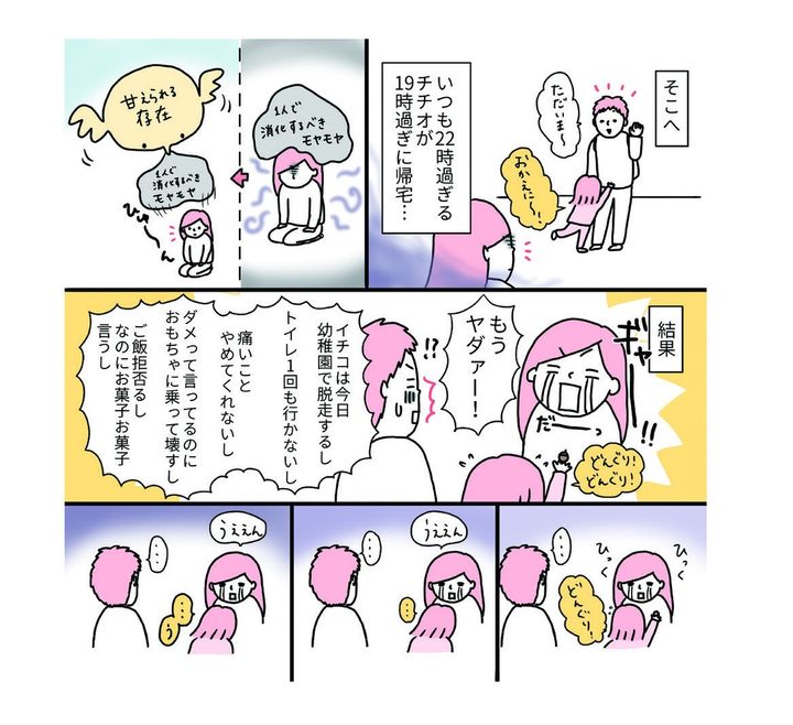 2. 娘へのモヤモヤが溜まってたところに夫帰宅。甘えられる存在の登場で思わず大爆発!!【育児ってこんなに笑えるんや! #40】