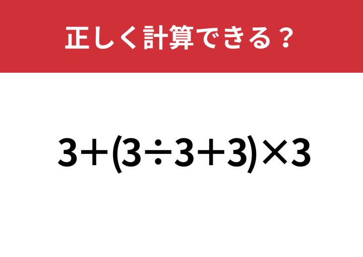 基本の完成度チェック!「3+(3÷3+3)×3」正しく計算できる?