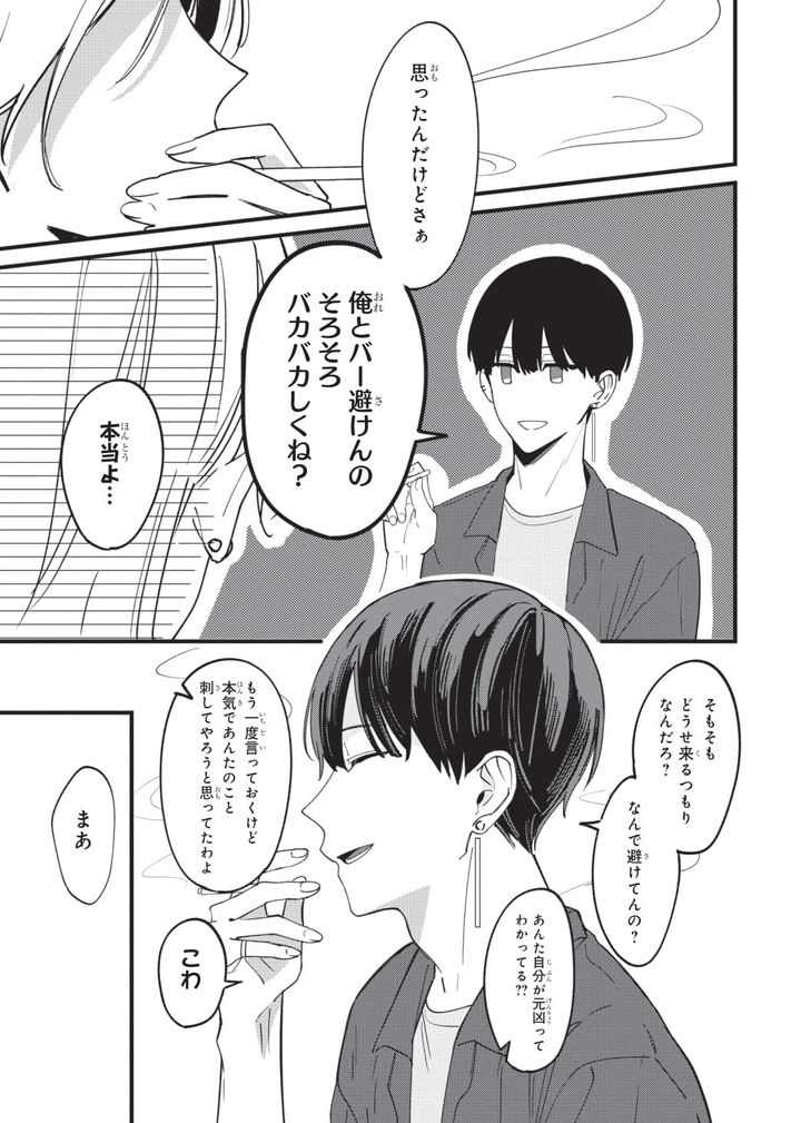 毎日仕事で忙しいOL・佳帆の唯一の楽しみは、バーで知り合った泰(あきら)という男とお酒を交わしながら気兼ねなく話すこと。三十路で童顔な泰だが、酒・煙草・女遊びも激しくクズ要素は満載。でも、友人としては良い関係を築けているはずだった……あの夜、一線を越えるまでは。