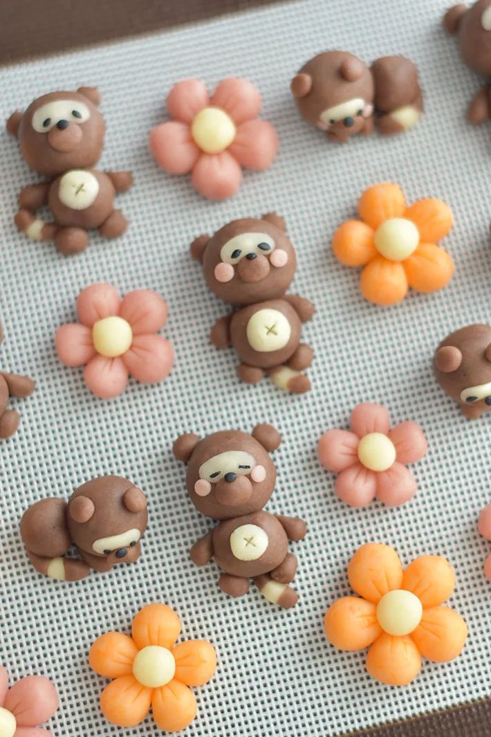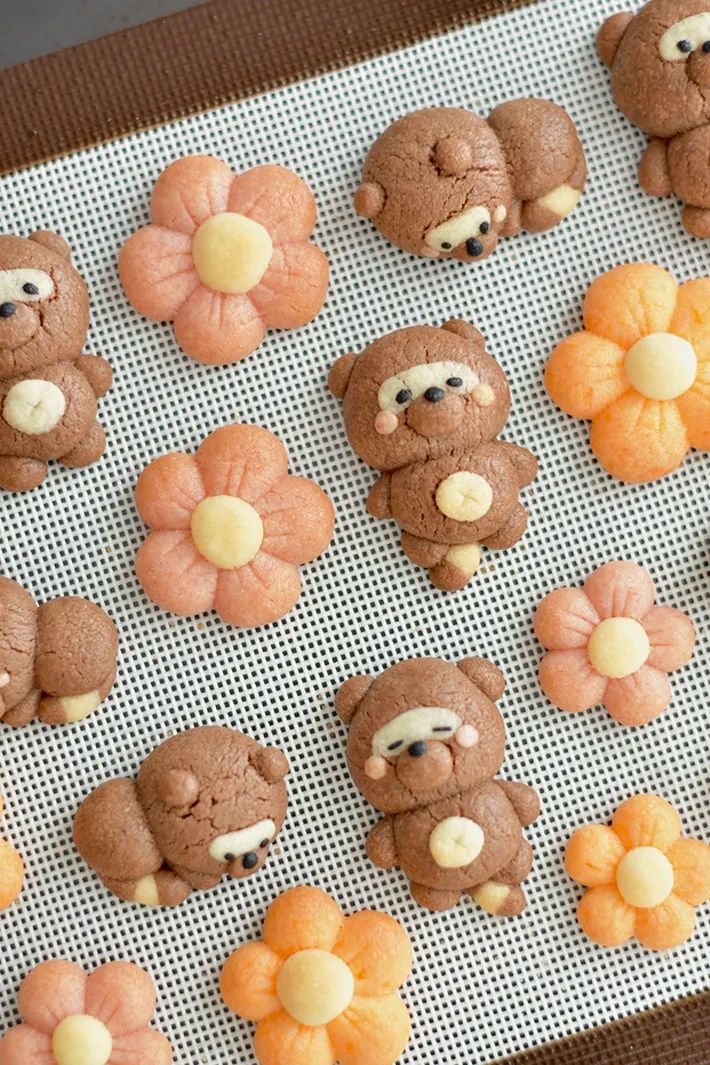 かわいらしい表情のタヌキとお花のクッキー。