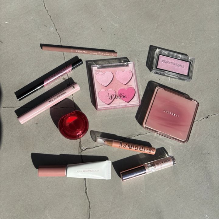 「メイク熱が高まった私のベスコスたち♡ 基本、カラーはピンクを選びがち。 韓国アイドルの方のメイクに憧れがあるので、Wonjungyodasiqueなど韓国コスメが多いのも特徴かな。