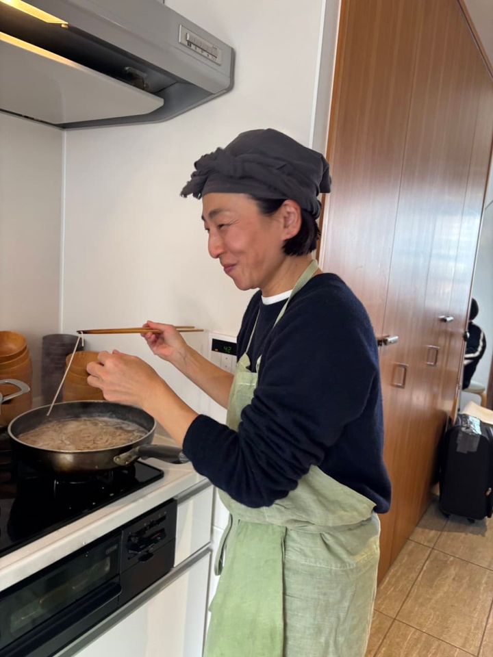 スタッフひろこが休みなく蕎麦を茹で続けます!