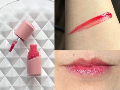 みずみずしいテクスチャーでぷるんとして艶やかな印象に仕上がるティントリップ。唇の縦ジワも目立ちにくくなります。「フィーバー」は、ピンクのニュアンスを感じる赤リップ。大人可愛い印象に仕上がります。