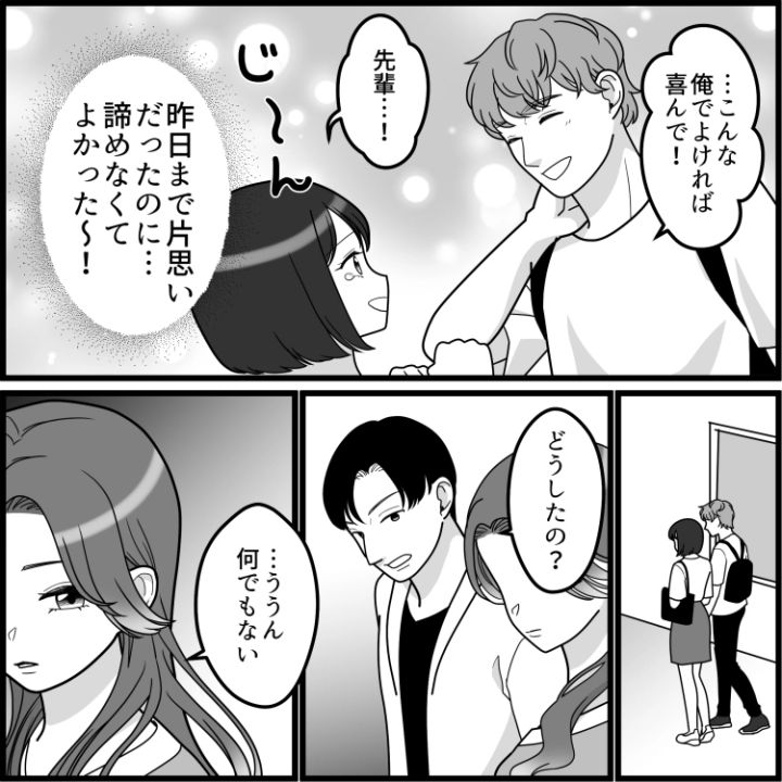 念願の片想いが実ったと思いきや、先輩たちに振り回されてしまったユミ。次こそは誠実な相手と、素敵な恋ができるといいですね!