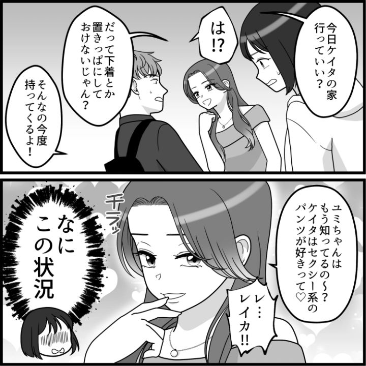 レイカさんのことをケイタ先輩に聞くと、なんとレイカさんの浮気がきっかけで、先輩たちが別れた事実を聞かされる。