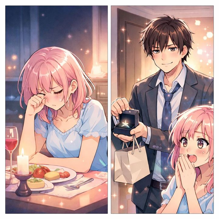 「……遅くなってごめん。本当は、明日から君とプロポーズ旅行に行くために、今日中に全ての仕事を終わらせなきゃいけなかったんだ」 彼が震える指先で袋から取り出したのは、私がずっと憧れていたブランドの婚約指輪でした。