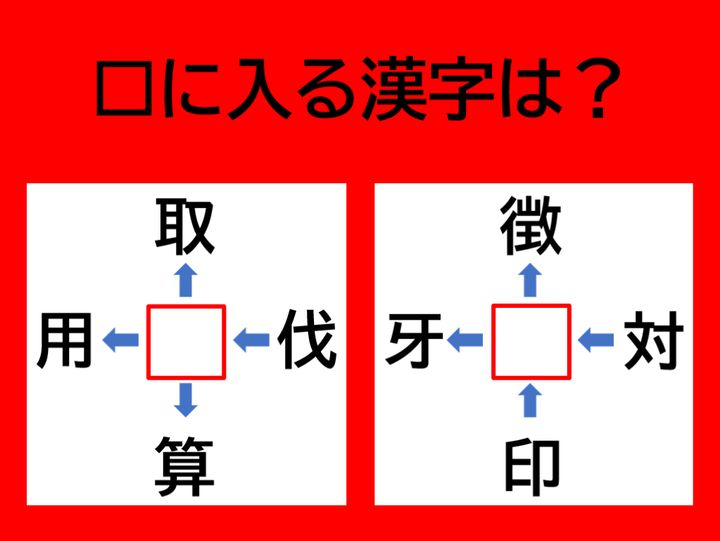 【漢字パズル】脳トレに挑戦! □取、□用、□算、伐□、に入る漢字は何?