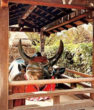 菅原道真が御祭神学問と芸術の神様。「学問の神様といえば北野天満宮なので、家族で学問成就を祈りながら、撫でるとご利益があると言う牛の頭を撫でてきました」(山口真奈・46歳・歯科医師)