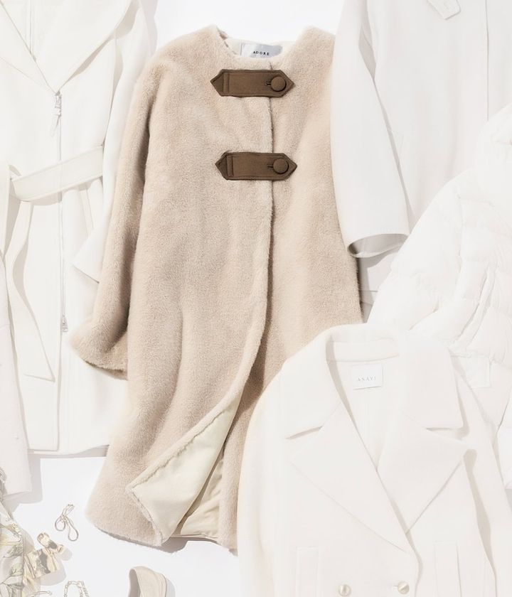 新年会など、年始に増える女子会。普段は黒やグレーが多いので、ここぞというお出かけには白をチョイス。