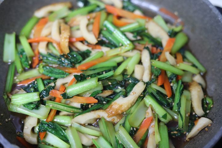 3. 冷凍できる「小松菜とちくわのサッと炒め」がお弁当に便利♪