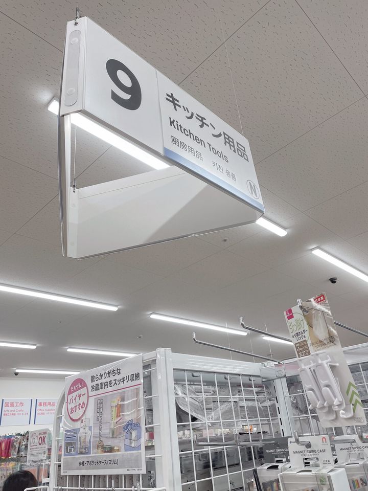 「たためるキッチンスタンド」を探すなら、まずは店内の天井にある案内板をチェックしましょう。