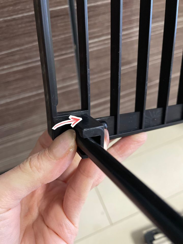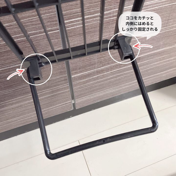 脚を内側のフレームに「カチッ」と音がするまで押し込みます。