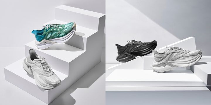 多層構造のアッパーには、シーズンを象徴するバタフライモチーフをメッシュ素材でさりげなくあしらい、つま先にはバタフライの羽を模したアクセントをプラス。バックヒールはテクニカルクッション素材を採用することでフィット感を向上させている。