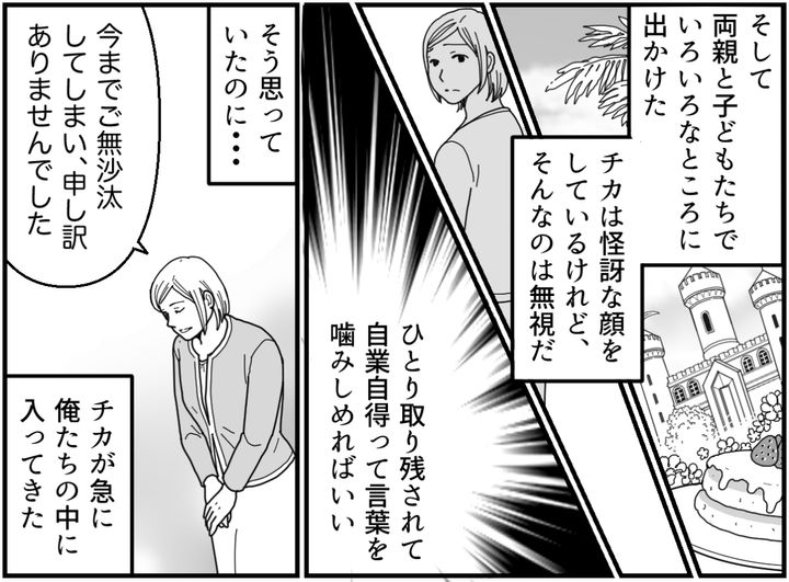 チカにはウチの親と仲良くしてもらいたかった。チカさえその気になれば、ウチの親は絶対に優しくしてくれたはずだ。母さんがあそこまでチカを拒否するのは、チカに原因があるからだ。チカさえうまくやってくれていたら、こんなことにはならなかったんだ。