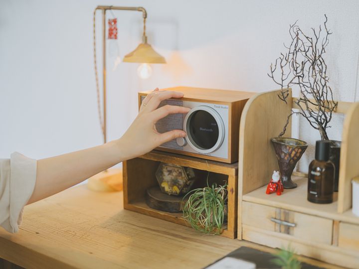 「インテリアとしても素敵で、もらって5年経った今でもお気に入りです」とTivoli audioの魅力を語ります。