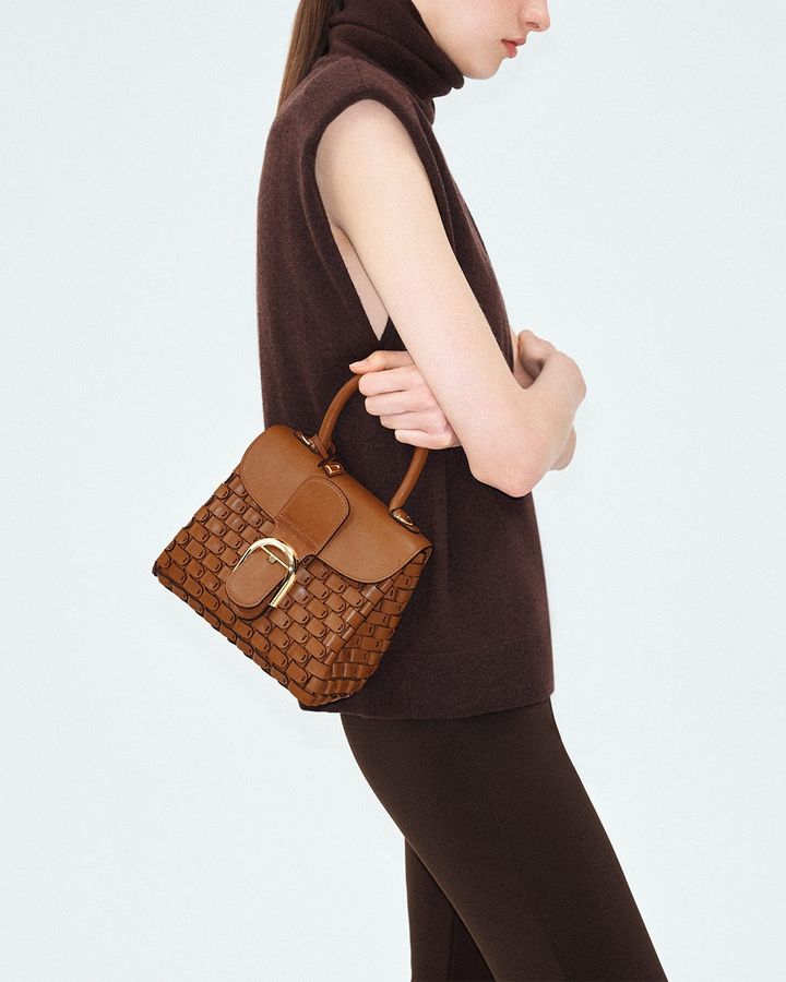 「アーセナル」の愛称で親しまれる、ブリュッセルにあるデルヴォーの本社兼アトリエ。その建物のレンガ造りのファサードに着想を得た“ブリヨン アーセナル”は、何百もの小さなD型のレザーパーツを、最初から最後まで同じ職人が、ひとつひとつ手作業で丁寧に縫い上げています。この緻密なテクニックは、デルヴォーが誇る揺るぎないこだわりを象徴しています。