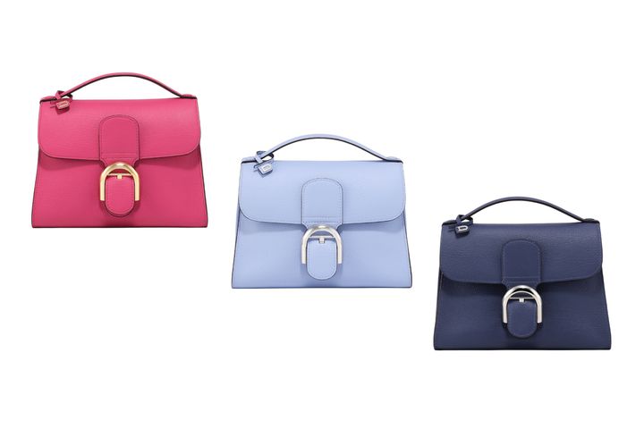 バッグ“ブリヨン テンポ S ”[W23×H17×D8.5] 〈左から〉キャンディスカイ、ブルーム、オラージュ 各¥828,300 Delvaux