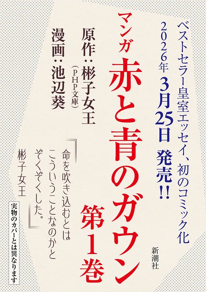 同年3月25日に『マンガ 赤と青のガウン 第1巻』として、新潮社より刊行されることが発表されました。