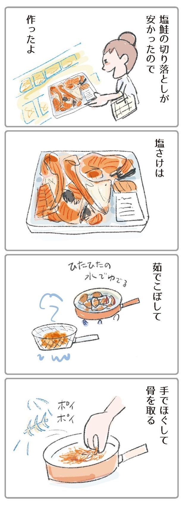 2. 自家製「鮭フレーク」 のつくり方! 塩鮭の切り落としをつかって手軽&おいしく【激せまキッチンで時短!簡単!ムダなしごはん #27】