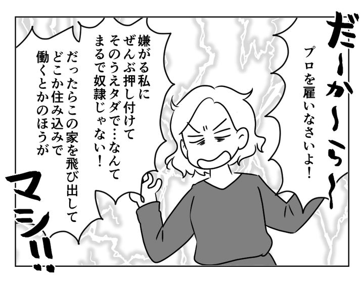 今回の主人公は40代半ばの専業主婦、アサカさん。アサカさんの夫は三人きょうだいの三男で、長男一家と次男一家、義実家はすべて車で20分ほどの距離に住んでいます。アサカさんのお子さんたちは少し前に成人して手が離れたのですが、今度はお義母さんに助けが必要になるように。そんなとき、突然長男嫁リツコさんに「あなたが世話をしろ」と言われてしまいました。しかも理由は専業主婦で暇だろうから、到底納得できるものではありません。それなのに夫トモキさんはこの気持ちを理解してくれません。