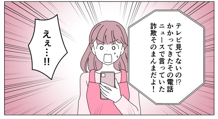 母でさえ知っていた詐欺電話の手口。知っていればもっと早く気が付けたのに……! それから私はスマホでニュース記事をチェックするだけではなく、朝と夕方にはテレビをつけてニュース番組を見るようになりました。皆さんもお気を付けください。