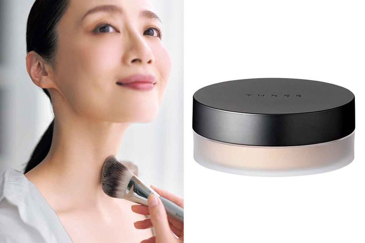 首と顔の差がくっきり出ちゃうのは色だけじゃなく質感の違いも。首と顔のトーンをそろえるためメイクの仕上げのパウダーを首にもオン。THREEのお粉は顔にのせた後の筆やパフでさらりとのせると首と顔の境目がなく、すりガラスのような仕上がりに。溶け込むように馴染む消えるお粉と大人気のパウダー。アドバンスドエシリアルスムースオペレーター ルースパウダー01 10g ¥6,050/THREE