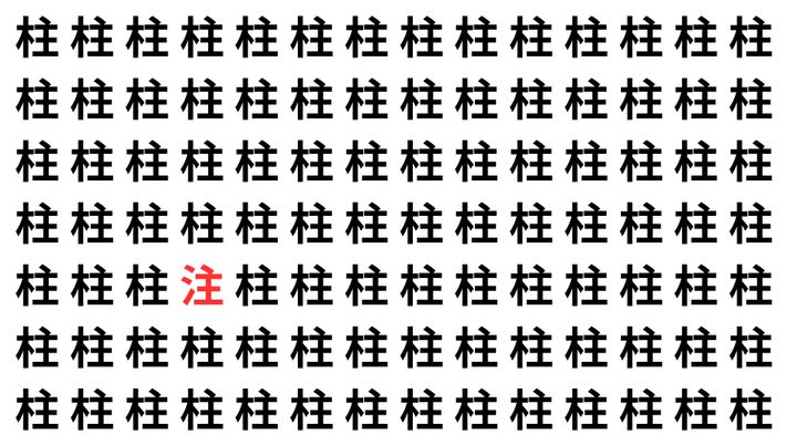 たくさんの「柱」の中に、よく似た別の漢字が1文字だけ隠れています。