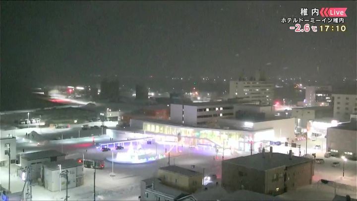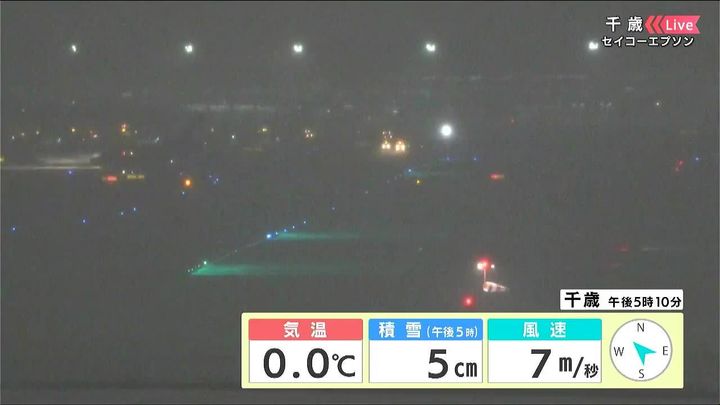 背景は7日午後5時ごろの新千歳空港情報カメラ