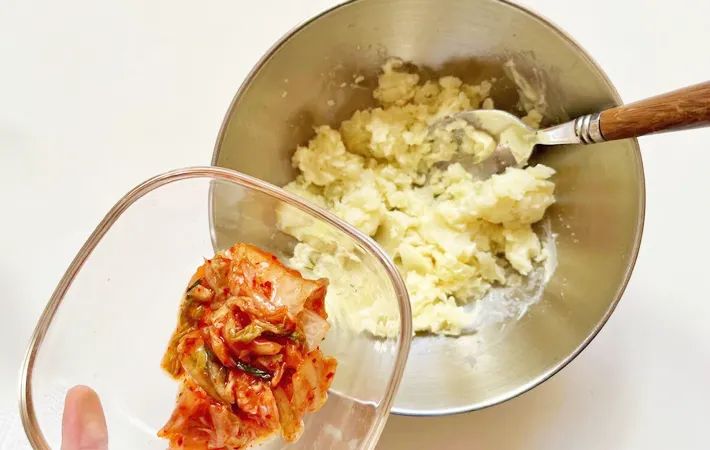 ピリッと辛い大人向けのポテトサラダを楽しみたい時や、冷蔵庫にキムチが余っている時に作ってみてはいかがでしょうか。
