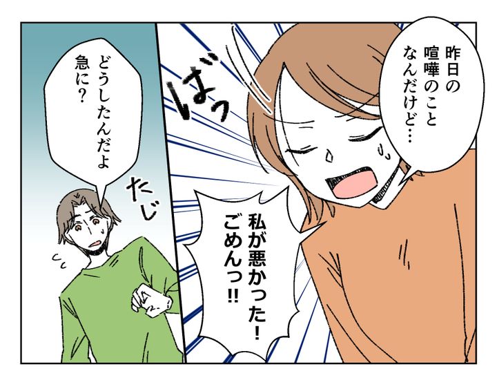アカネさん、無事素直に謝ることができました! ユウノスケさんは今日もアカネさんに怒られるとばかり思っていたようで、完璧に拍子抜けしています。一般的な家庭と比べながら決めたお小遣いでしたが、労働環境を加味する必要があったことは、ユウノスケさんが一番考えてほしかったこと。「ごめん」の言葉より、アカネさんからの理解を得られたことがユウノスケさんとしてはかなり嬉しかったようです。ユウノスケさん、アカネさんの謝罪にどう返すのか気になりますね。