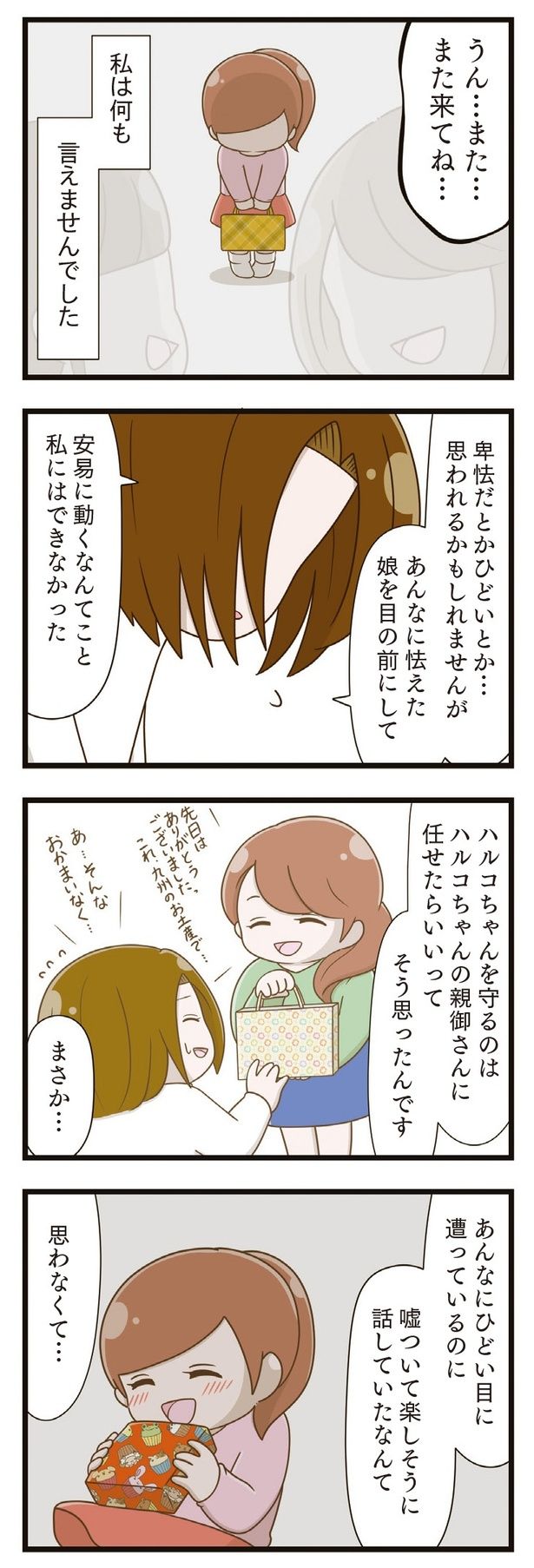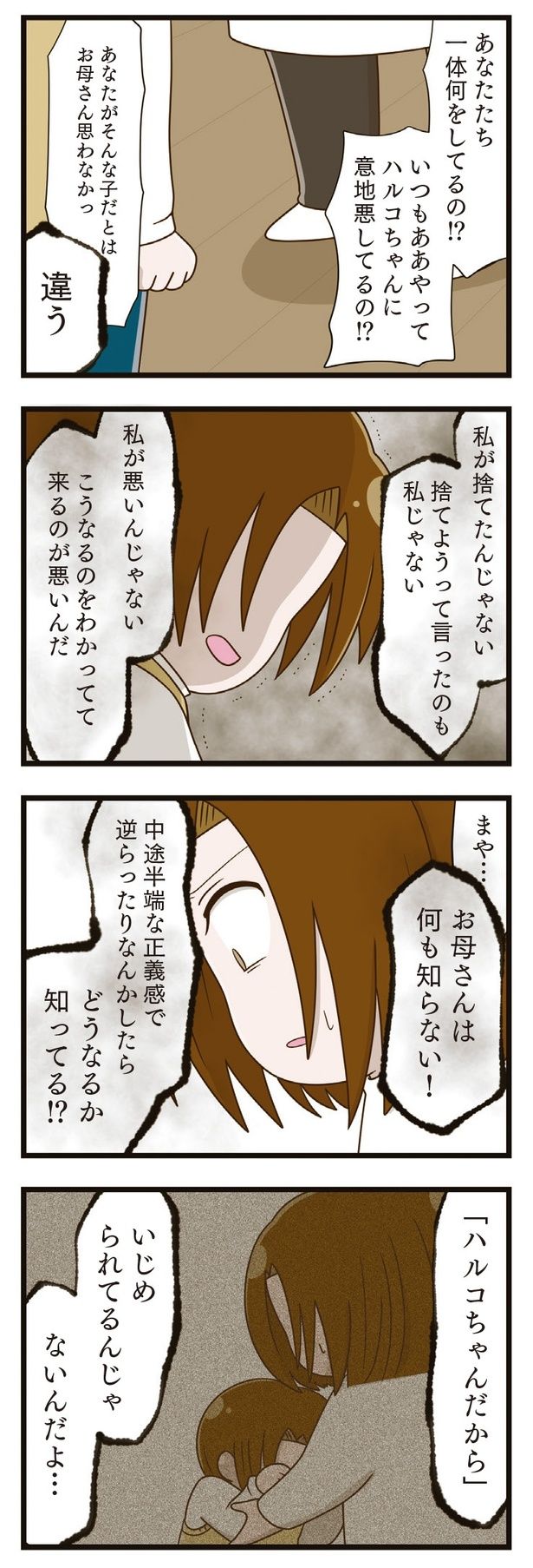 「お姉ちゃん学校でいじめられているんだって」息子の一言がきっかけで、母親は娘・ハルコの言動に違和感を抱くようになる。その結果分かったのは、ハルコが4年間、ひとりでいじめに耐えて隠し続けていたこと。いじめの本当の加害者は、被害者は誰? いじめと向き合う家族が希望を取り戻すまでの物語『家族全員でいじめと戦うということ。』を再連載でお届けします。いじめの原因になった同級生を描く新作『「お母さんの言うとおり」にしてきたのに 家族全員でいじめと戦うということ。 サキコの場合』も好評発売中です。