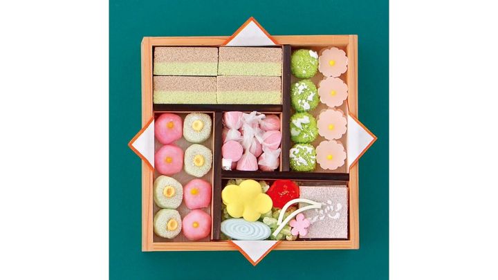 四畳半の茶室に見立てた箱に、彩り豊かな干菓子がぎゅぎゅっと敷き詰められた様が美しい。「四季の移ろいを映し出す『京のよすが』を開けると楽しい気持ちになります」と池坊さん。戦後、再建に向けて六代目が考案した大切な味でもあります。
