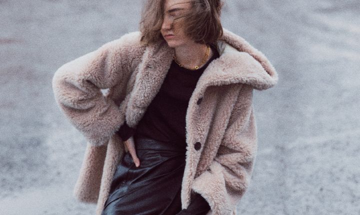 フードがあるだけでリッチなファーにも親しみが宿る。シックな黒にノーカラーのファーだとややエレガント。フードのあしらいが適度なくずし役に。