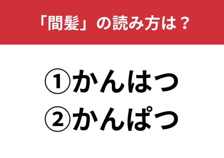 正しい読み方は「かんはつ」です。実は「間髪をいれず」という言葉も、髪を入れることができないほど間がないという意味で「かん、はつをいれず」として区切りをつけて読むのが正解なんです。初めて知ったという人も多いかもしれませんね。