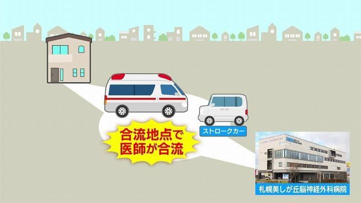 あらかじめ決めてある合流地点に、医師が「ストロークカー」で急行し、救急車に乗り込み、医療処置しながら搬送する取り組みです。