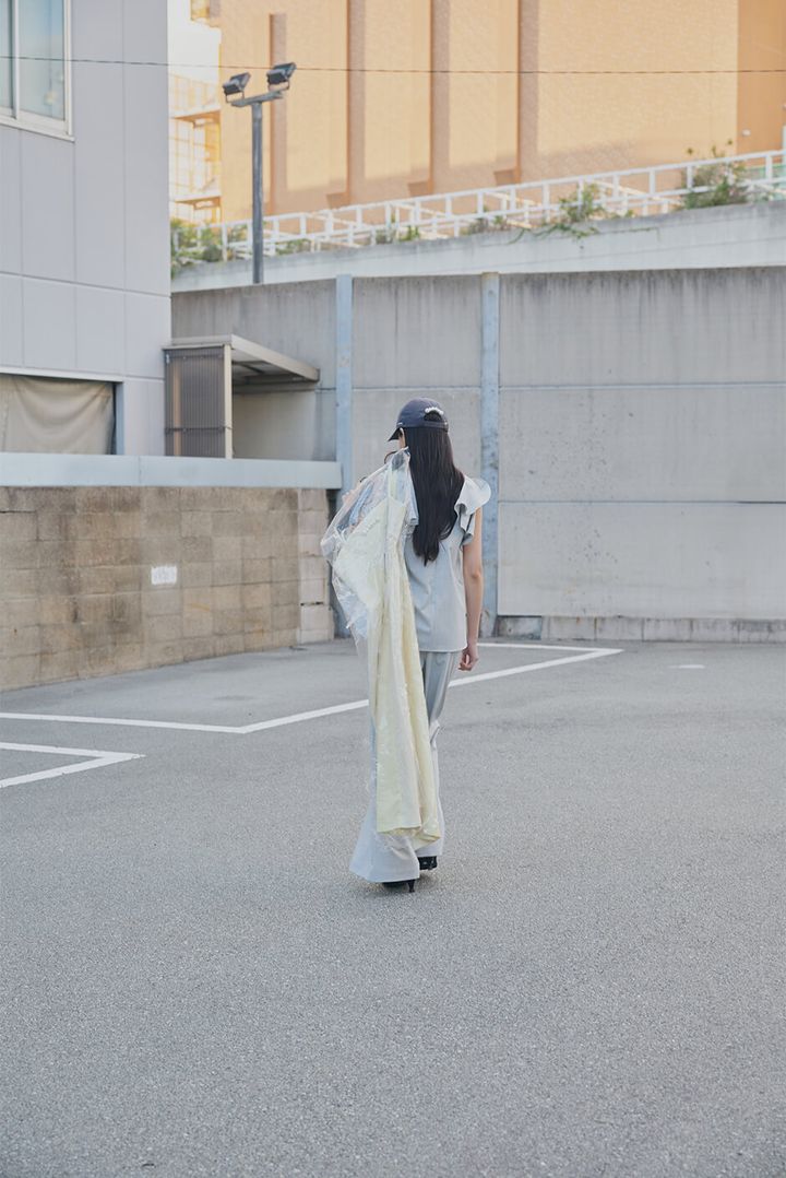 都市の中に点在する余白や無機質な空間に差し込む柔らかな光、そして身体と服との間に生まれるわずかな距離感が着想源となっている。