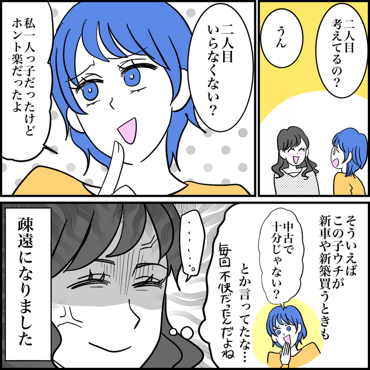 自分が一人っ子で楽だったからという理由で、二人目の必要性が見いだせないらしい友人。考え方は人それぞれだけれども、これから二人目がほしいと話している人に、それ言う!?